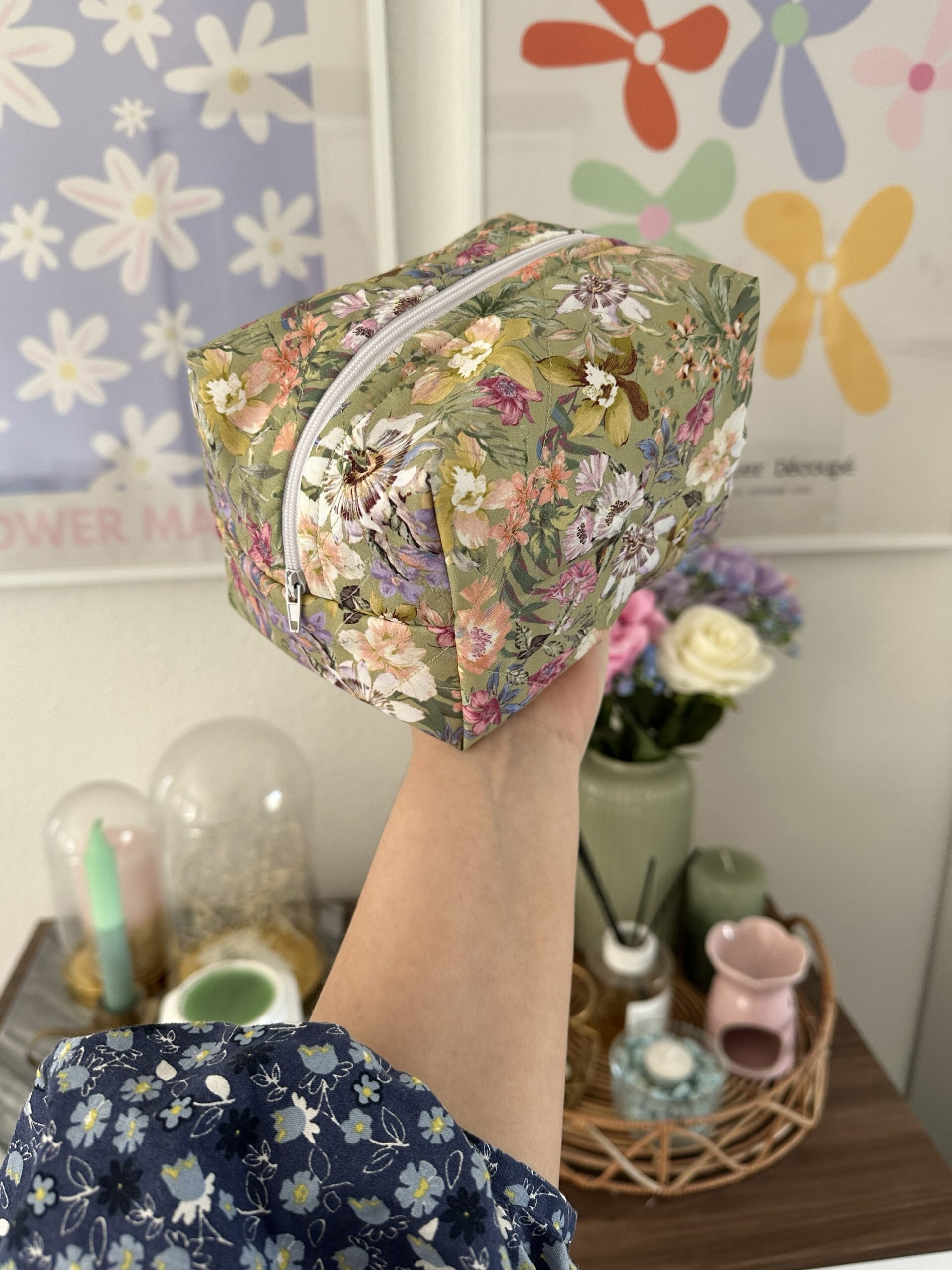 / Green Floral Makeup Bag